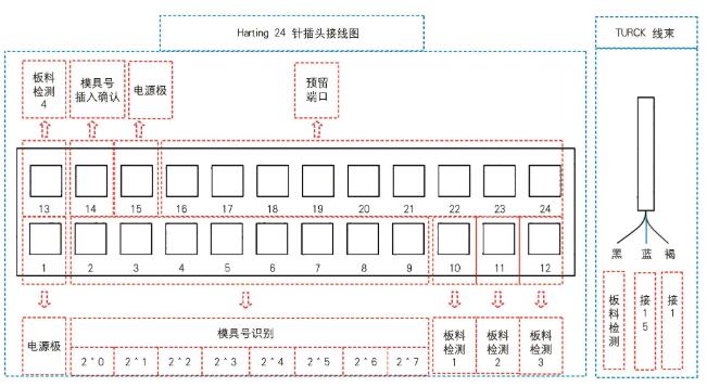 ⑸模具信号识别插头的接线方式可按图1连接,其中模具号采用二进制规则进行编排;