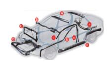 ⑼辊压成形应用。辊压成形在乘用车上应用主要体现在轿车车身和座椅系统。车身上典型辊压成形零件包括:前后保险杠、车门防撞梁、车门框、门槛加强板、顶盖横梁和风窗下横梁等,座椅系统辊压成形零件主要是座椅导轨。