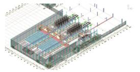 综合运用Revit、Microstation、Catia平台进行车间三维整体设计,建立数字化车间模型(图8),赋予厂房、设备、管线数字化属性信息,方便日常维护和后续改造。