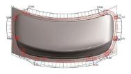 ⑷增加板料尺寸,增加成形过程中的压边圈压料的面积,有利于控制走料的速度,实现增加裕度的目的;具体措施为板料步距方向尺寸增加10mm( 图9);此零件在前期CAE模拟及前期项目验收投产时,为了得到更好的材料利用率(利用率达到69.7%),板料步距方向尺寸控制较小,为序列化生产的稳定性埋下隐患;拉延件成形后在拉延筋外板料均不足5mm,导致压料边不足,压料力作用减少,导致模具裕度降低;板料步距增加10mm后,压料面上板料压料更多,模具成形裕度增加,对板料性能波动的要求变低;经过多个生产批次验证,制件起皱缺陷未再出现,实现了序列化的稳定生产。