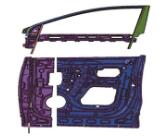⑵门内板前后部一体、上段加强板分离式设计,如图3所示。这种组合和焊接方式材料利用率高、利于单件/焊接尺寸一致性管控,但是内板强度低,一般运用于低端、安全质量要求低的车型。