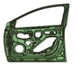 ⑷门内板前后部、上段加强板一体设计,如图5所示。这种组合方式利于单件/焊接尺寸一致性管控,但单件材料利用率低。