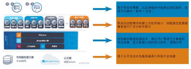 ⑷应用功能模块与接口。每个功能模块都有预先设置的规则引擎,可按具体工作内容进行修改,创建生产现场需要的业务流程和控制流程,大幅提高应用功能模块的开发效率。