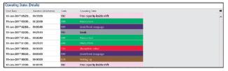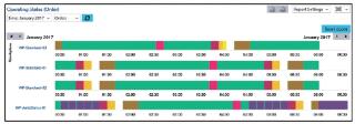 2)对于一条或几条生产线的实时运行状态,通过表格可以自定义查看任何时间段的状态信息,是停机或生产,还是生产准备等,事先对各种状态进行约定,用不同颜色加以标示,如图4 所示。