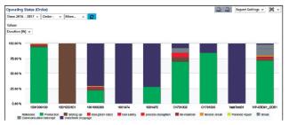 3)针对一个订单或几个订单的生产过程,实时追踪进展状况,是正常生产、异常停机、计划停机,还是定义的其他原因停机等,通过不同颜色实时区分,如图5 所示。