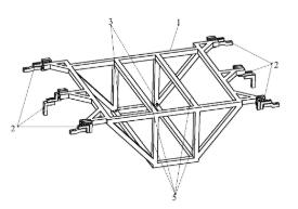 1-检具本体 2-导轨安装孔检测部 3-定位销 4-座椅安装孔检测孔 5-加强杆