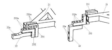 21-固定件 22-检测件 231-第一过渡件 232-第二过渡件 22a-导轨安装孔检测孔 231a-第一连接孔 232a-第三连接孔