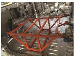 在焊装焊接白车过程中就要做到,在线检测及时发现安装孔问题,并及时维修整改,保证合格的产品流转到下道工序。通过这种检具本体上的导轨安装孔、检测孔与通止销配合,对汽车座椅导轨安装孔进行在线检测。设置导轨安装孔、检测孔的检具本体,根据车身内部空间进行适应性设计,将检具本体固定在车身底板上,若通止销能够依次穿过导轨安装孔、检测孔和对应的座椅导轨安装孔,则可快速判断该座椅导轨安装孔合格;否则为不合格。该检具实现了对车内座椅导轨安装孔的有效检测,操作方便。该检具实物如图3所示。
