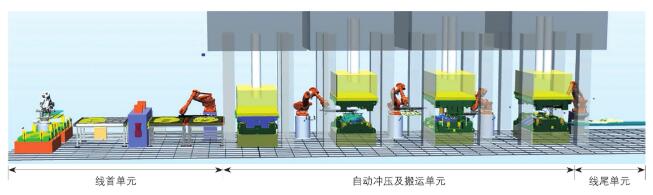 冲压自动化生产线主要包括线首单元、自动冲压及搬送单元和线尾单元,如图1所示。