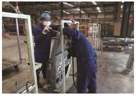 主焊线改造存在的技术风险包括,顶盖焊接工位采用机器人自动焊接技术,机器人稳定性需进一步验证;项目实施涉及侧围线、主焊线多个工位,生产线通过性分析需进一步细化。规避方案包括充分进行技术交流,并在调试安装阶段,针对此问题进行尺寸验证跟踪;对生产线通过性及方案可行性进行充分分析评审,确保方案顺利实施。