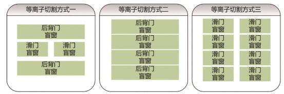 某车型盲窗车盲板包含滑门外板盲板、后背门外板盲板、侧围外板盲板。滑门外板盲板、后背门外板盲板需要数控等离子切割机进行加工,侧围外板盲板是使用侧围上段,进行再次手工等离子切割成形。