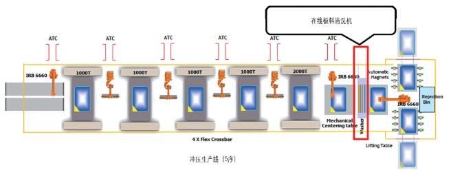 图1 清洗机在冲压生产线中的布局
