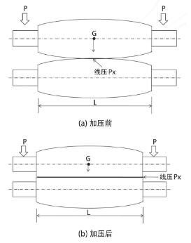 挤干辊作用于板料的压力称为线压Px,挤干辊对板料的加压过程如图5 所示。