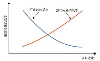 冲压同步工程是在整车开发过程(包括概念设计、工程设计以及模具招标阶段)中对车身零件进行冲压工艺分析的过程。传统的汽车开发设计环节和生产环节严重脱节,易出现设计、造型一流,但后期制造无法实现的情况,而重大的设计变更会造成开发周期延长、成本攀升,甚至生产出二流产品。运用同步工程后,在早期造型设计时,制造工程师便开始介入,由他们对冲压工艺、模具制造等方面进行评估,是平衡质量、成本和制造周期的有效手段。在项目周期中,越早发现潜在制造风险,可采取的措施越多,解决问题的成本越少(图1)。模具开始制造之后,若出现产品设计变更,情况严重时甚至会导致模具报废,需要重新开模,并使项目节点延后。