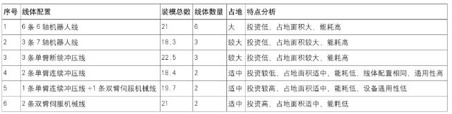 汽车厂冲压车间规划的核心在于产能计算和线体选用,本项目规划装模数量为18个,根据表3中的产能计算结果可知,可选用的几种典型线体配置方案见表4。