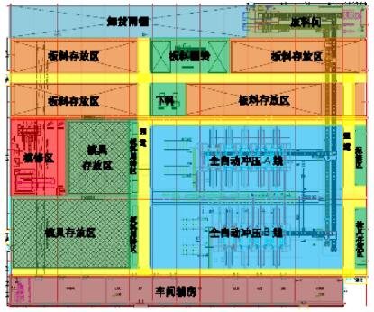 汽车工厂的前期规划通常和产品方案、模具方案同步进行,产品方案和模具方案的进度延后,往往不能在工厂规划期间给予准确的技术参数支撑,这种情况下可采用估算法来计算模具存放区、板料存放区等主要区域的面积。
