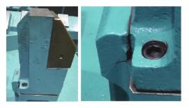 ⑵上模驱动腿挡墙断裂,如图4所示。