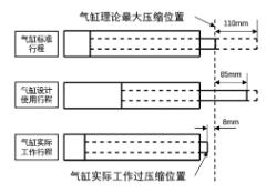 在模具加工精度未确认的情况下,由于模具出厂前调试压机气源稳定性及冲压速度一般较冲压母线差,且冲压件生产数量较少,因此上述问题不容易被发现。为避免此类问题发生,必须在调试验收过程中根据气缸理论设计的伸缩数据,对气缸实际伸缩量进行测量验证。
