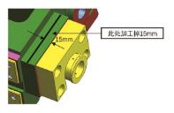 ⑴将驱动座与气缸1的连接板安装面加工去掉15mm,保证气缸1正常使用并留有伸缩余量,如图8所示。