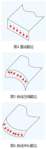 曲线翻边完成后,由于应力分布不均匀,内应力释放后使翻边面产生内凹或翘曲现象,属于翻边回弹的一种。