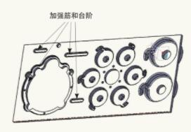 底板通过在大电机孔增加台阶结构和在大平面处增设加强筋,解决了其一阶模态频率过低的问题,且使得底板的尺寸和重量增加量较小。鉴于底板使用304 不锈钢材料,厚度为5mm,在实际生产中拟采用精密冲压一次成形,能较好提高产品品质和提高生产效率,使得制作成本更低,底板的结构强度更好。