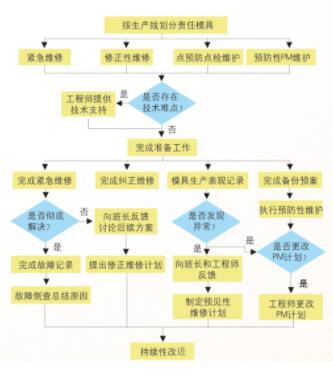 在“差异化”的理念下,通过聚焦模具每天生产表现和出现的问题、梳理识别模具潜在的停机风险点,制定紧急和纠正性维修方案,通过大数据积累分析,优化制定其他同类模具的预见性和预防性维护策略。