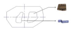 在整车开发中,识别存在较大区域废料的零件,在开卷落料或冲压工艺设计时,考虑废料的二次利用。如汽车侧围零件和带天窗的顶盖,存在较为规则和相对完整的废料,可以对废料进行回收,用于其他零件的生产(图10);或者采用套件生产工艺,即在拉延模具设计时,在废料部位设计小型的零件进行套件生产,在分切时进行零件分切,同时获得两种或两种以上零件。