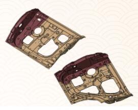 合模工艺除了应用于内板零件的模具设计外,也可应用于外板模具开发中,如左右车门外板模具。在整车开发中,零件的数量和种类众多,在满足生产条件的情况下,尽可能选择合模工艺。