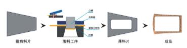 某车型在设计初期全系采用全景天窗以应对市场需求,安装天窗玻璃的天窗安装板在模具设计开发及现生产阶段的生产工艺为:从钢厂购买原卷发往剪配加工中心进行摆剪(梯形板料),摆剪板料送到冲压厂后在进行落料生产,如图1 所示。