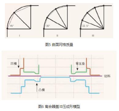 冲压成形工序的仿真分析是所有工序分析中最重要的分析。其他工序的分析都是以成形工序的结果为基础。离合器盖属于典型的厚板冲压成形零件,和常规薄板冲压零件相比,在材料、速度、网格及结果判定标准方面有其自身的CAE 技术要求。