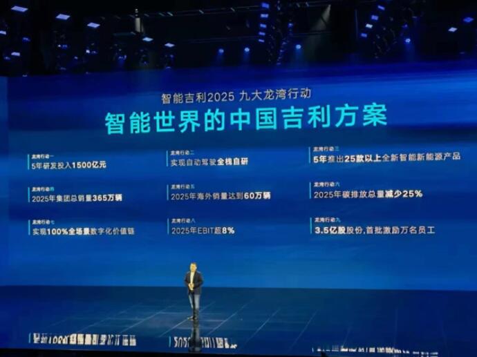 龙湾行动三:5年内推出25款以上全新智能新能产品,包括吉利超10款车型、几何品牌超5款车型、领克超5款车型以及全新换电出行品牌超5款车型。