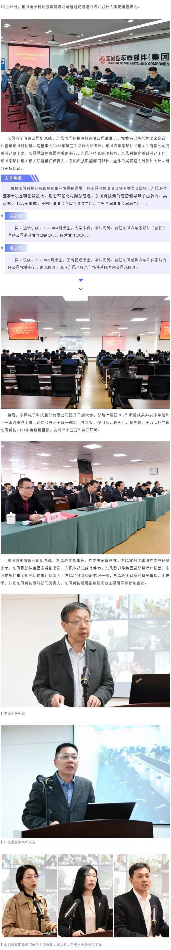 10月29日,东风电子科技股份有限公司通过视频连线方式召开人事安排宣布会。