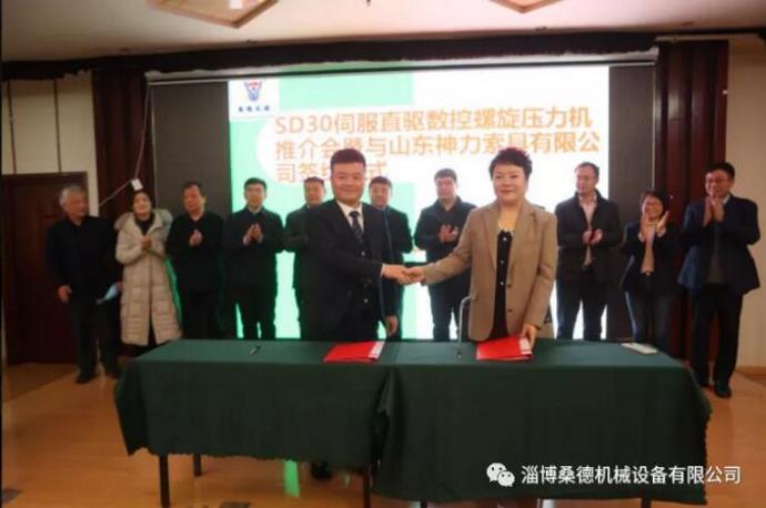 12月19日,山东圣德智能装备有限公司SD30伺服直驱螺旋压力机推介会暨与山东神力索具有限公司签约仪式在淄川举行。