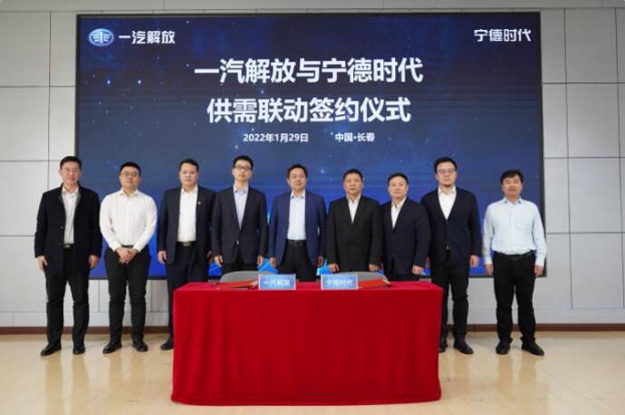 2022年1月29日,一汽解放汽车有限公司与宁德时代新能源科技股份有限公司在吉林长春签署《五年供需联动协议》。