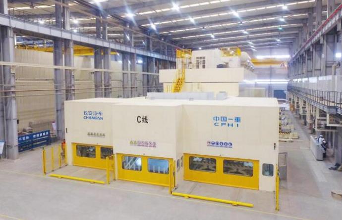 7000吨高速冲压线实际生产节拍可达15spm,较国内外同类型高速线实际13spm的生产节拍有显著提升。滑块行程下死点和工作台的平行度,比国际标准提高近一倍,有效提高了冲压件成品率。同时,在整线三维参数化设计、离线节拍优化、远程故障诊断功能、一键恢复、变压边力控制等方面均达到国际领先水平。目前,该项目两条高速线已应用于合肥长安汽车有限公司,成功实现国产化替代,而价格仅为进口设备的一半,获得了客户高度认可。