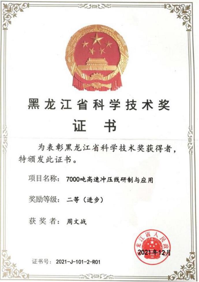 近日,黑龙江省科学技术奖励委员会公布了2021年度黑龙江省科学技术奖结果,中国一重大连工程技术锻压装备设计研究院自主研发的“7000吨高速冲压线研制与应用”项目,荣获黑龙江省科技进步二等奖。