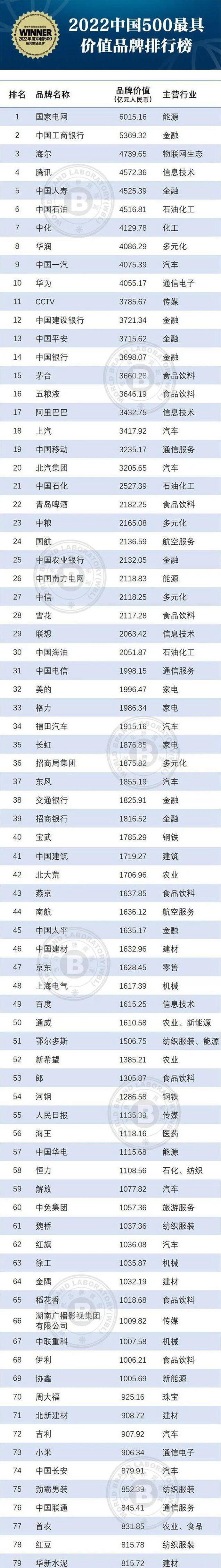 由世界品牌实验室(World Brand Lab)主办的(第十九届)“世界品牌大会”于7月26日在北京举行,会上发布了2022年《中国500最具价值品牌》分析报告。