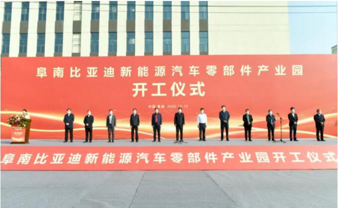 10月15日,投资100亿元的阜南比亚迪新能源汽车零部件产业园项目举行开工仪式。