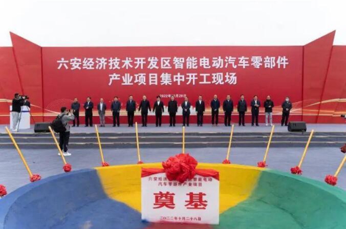 10月28日上午,六安经济技术开发区智能电动汽车零部件产业项目集中开工,市委副书记、市长潘东旭出席开工仪式并宣布开工。市领导付新安、车照启、刘洪洁、聂保国,市政府秘书长汪宏军,市政协副主席,开发区工委第一书记、管委主任卢俊,开发区两委领导,管委各部门、各垂管机构领导班子,开工建设项目及施工单位负责人等参加。