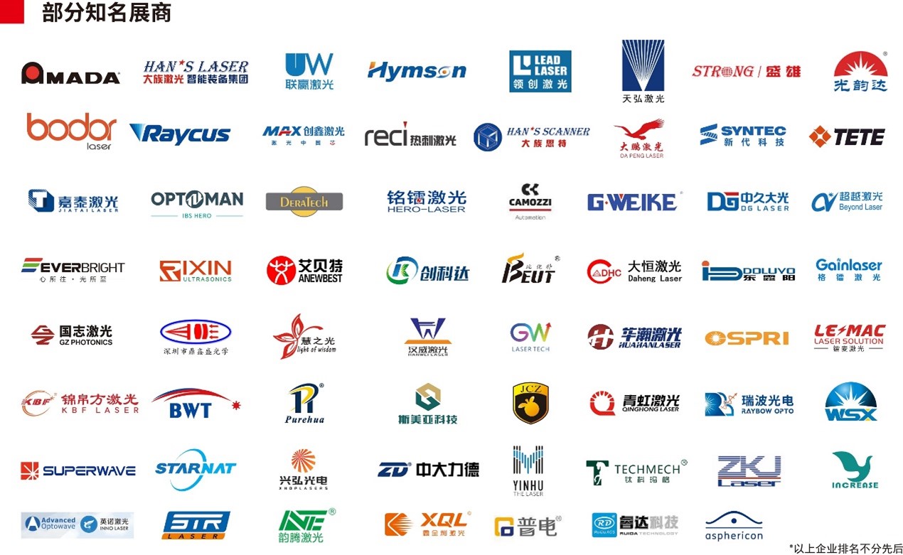 天田、大族、华工、宏山、海目星、迅镭、智能普睿玛、领创、天弘、邦德、盛雄、光韵达、恩耐、Novanta、利泽莱恩、锐科、创鑫、热刺、华瑞、海富光子、昂纳、飞博、瑞丰恒、大科、光威、联品、罗根、嘉强、岗春、联赢、逸飞、泰德、大族思特、菲镭泰克、鼎鑫盛、卡门哈斯、新代科技等。