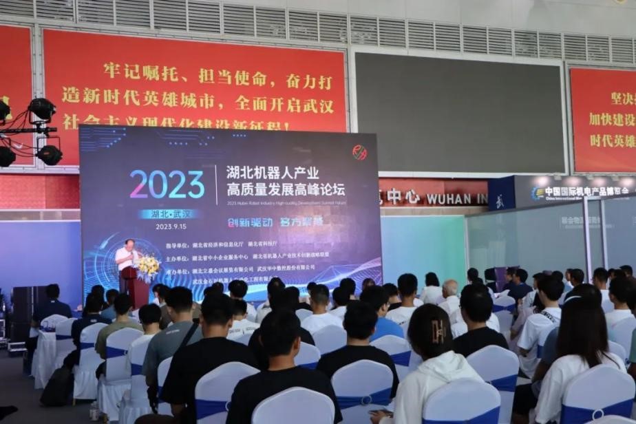 9月15日上午,在湖北省经信厅、科技厅的指导下,由湖北省中小企业服务中心、湖北省机器人产业技术创新战略联盟主办、湖北立嘉会展展览有限公司、武汉华中数控股份有限公司、武汉金石兴机器人自动化工程有限公司承办的“创新驱动 多方聚能--2023湖北机器人产业高质量发展高峰论坛”在武汉国际博览中心顺利举行。