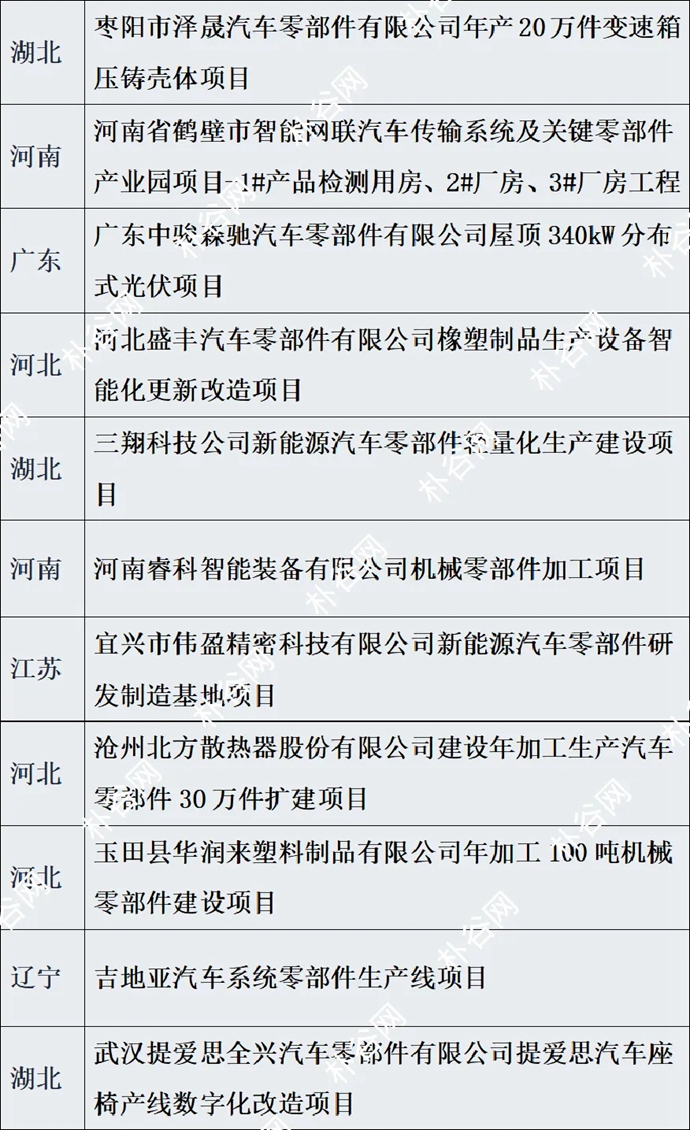 近日,朴谷网公布100个近期新建零部件项目名单。