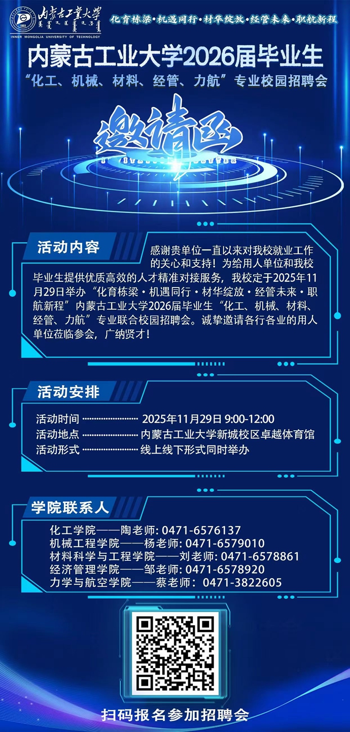 邀请函 | 内蒙古工业大学2026届毕业生“化工、机械、材料、经管、力航”专业校园招聘会