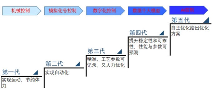 从控制角度看,锻压设备已经走过三个阶段,目前处于第四个阶段,我们必须走好第四个阶段,迎接第五阶段的到来,第五个阶段应该是AI控制,大胆预测五代以后,那可能就是“人机合一控制”或“机械生态控制”时代。