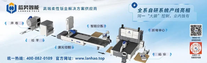 2025年10月1日,南京蓝昊智能科技有限公司全系列自研系统自动化产线在山东博兴县成功落地并投入运行。该自动化产线是一套高度柔性化的智能化钣金加工解决方案,整体由开卷、校平、激光切割、柔性智能分拣、折弯、码垛等多个核心环节组成,各模块协同运作、数据实时采集。该自动化产线系国内首家全系列自研系统,无需二次对接,打破数据壁垒,对客户MES系统、云系统极具开放性,助力企业生产一体化智能管理,大大加速了国产钣金自动化的发展进程。