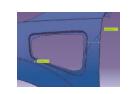 产品充电口如果按传统工艺,OP10拉延工序会将充电口填充,通过OP20预修边、OP50翻边整形、OP60精修边三道工艺内容,其中要避开OP30发罩搭接侧的斜楔整形工序及OP40与门搭接侧的斜楔整形工序,所以带充电口的翼子板需要六工序。