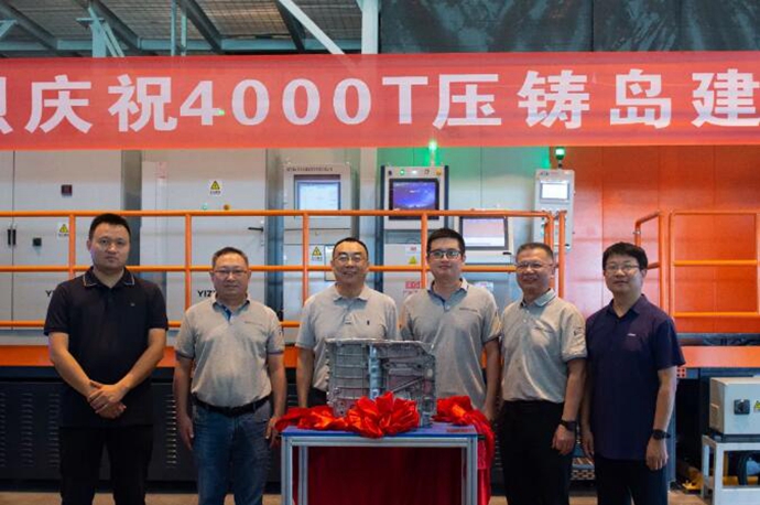 8月29日上午9点,在智新科技发动机工厂压铸车间4000吨压铸岛首台电驱动壳体毛坯下线