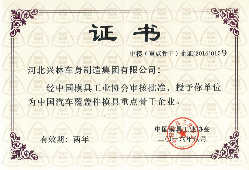 中国汽车覆盖件模具重点骨干企业证书(2016-2018)